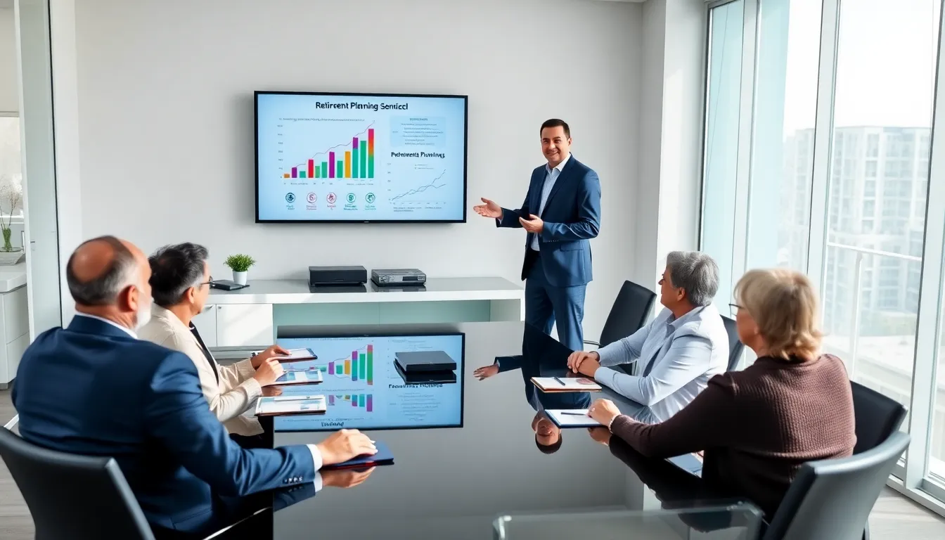 diverse team discussing retirement planning in a modern office.